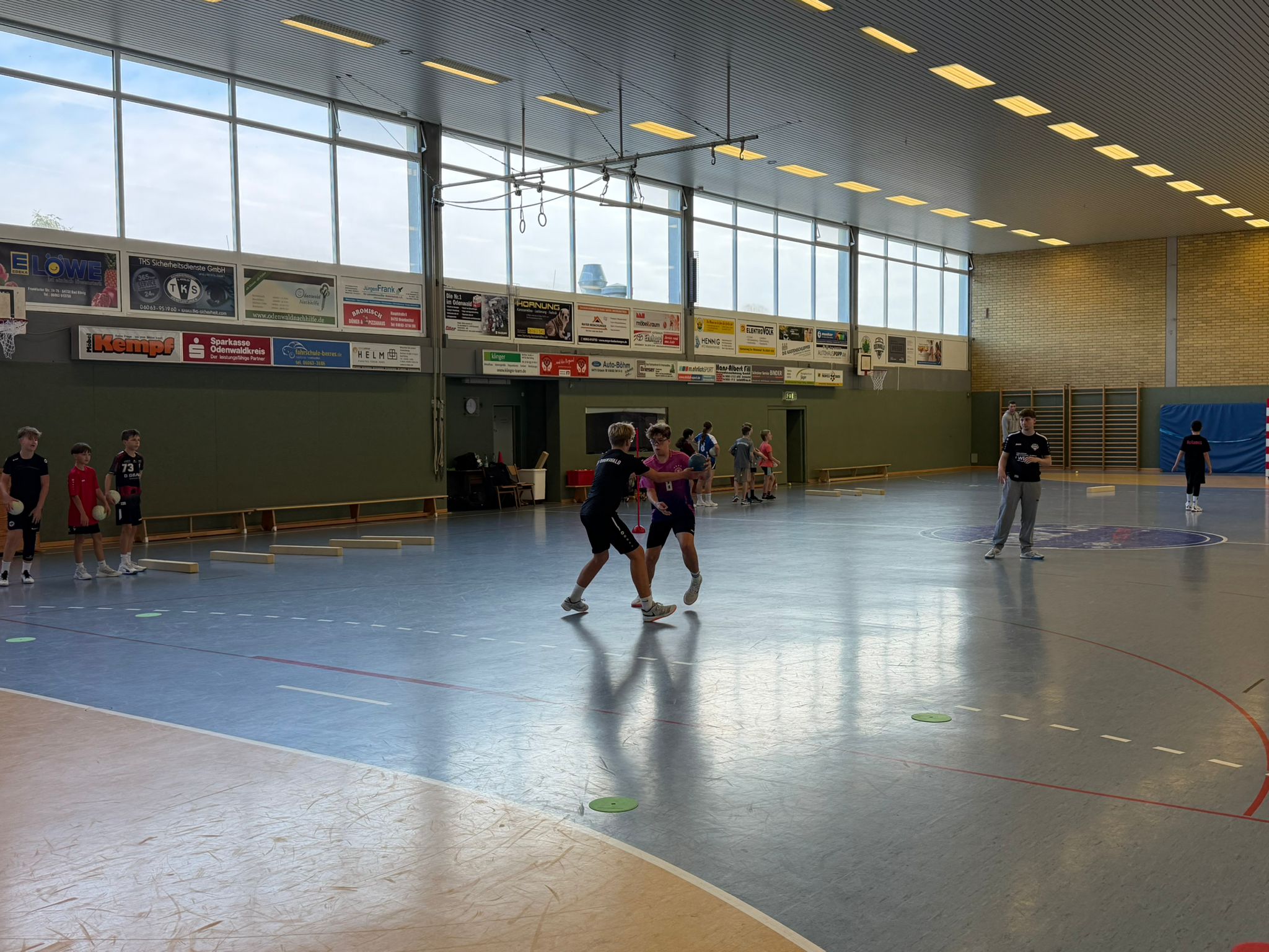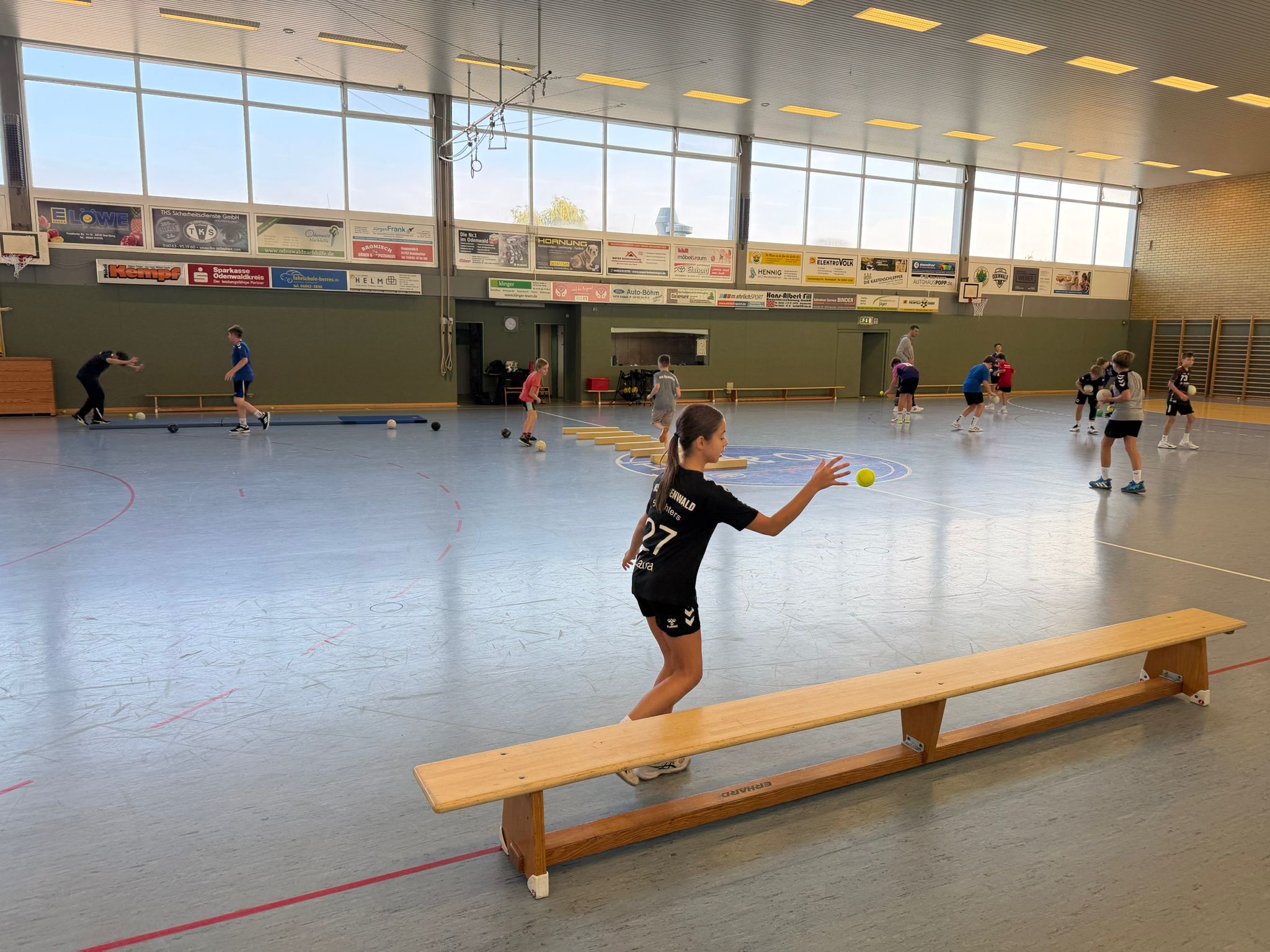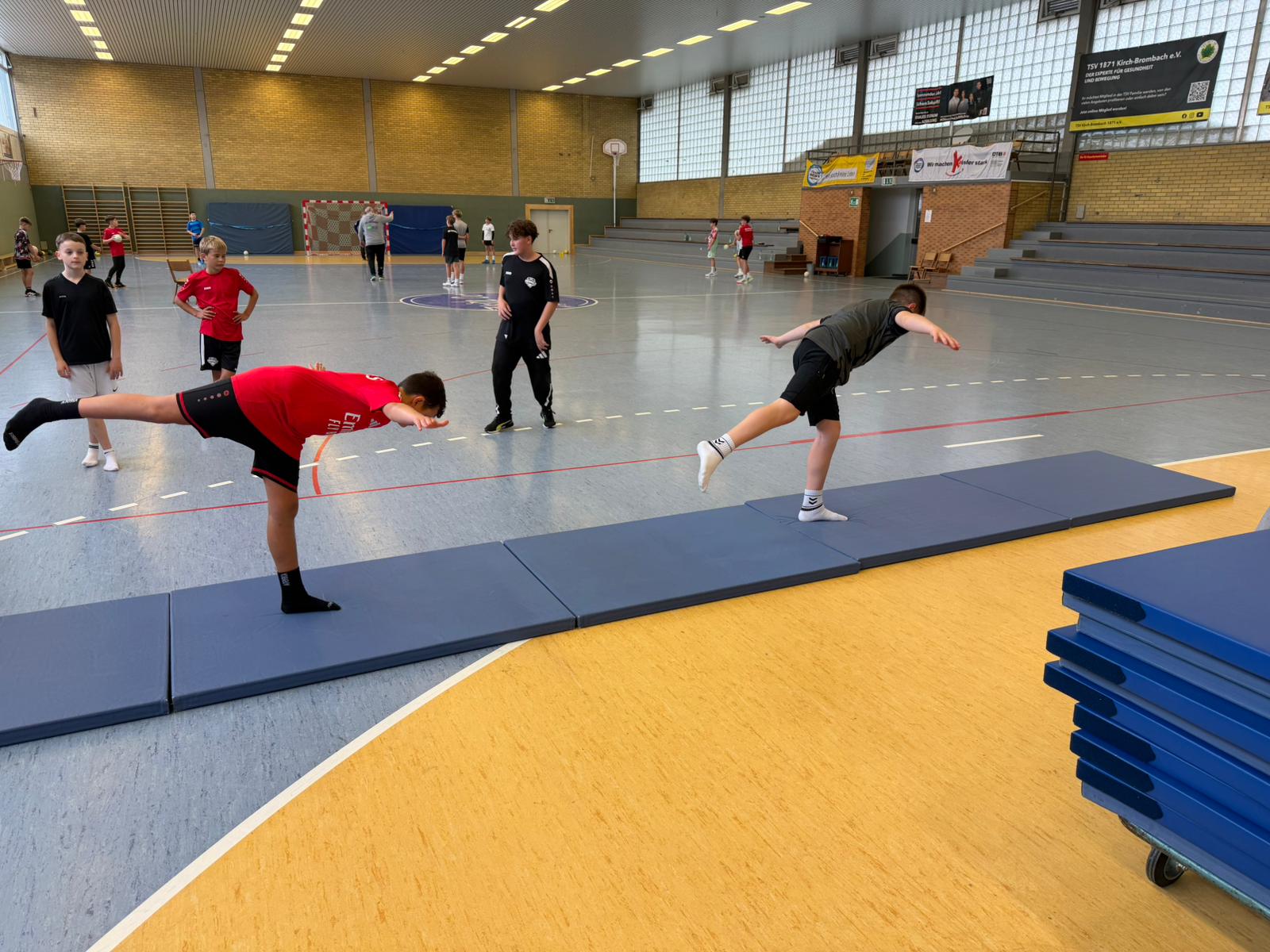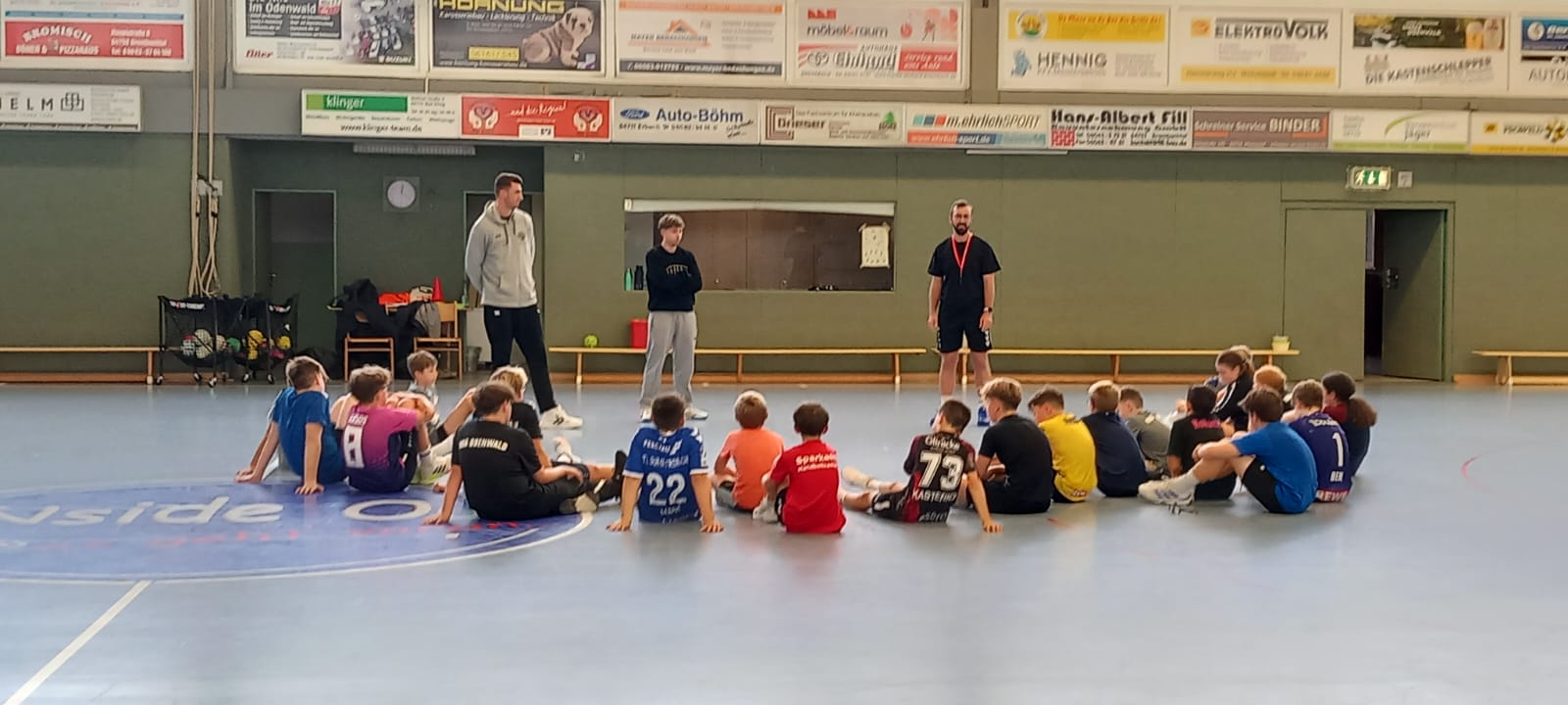 Drei Tage lang wurde trainiert, geschwitzt und viel Spaß gehabt. Die HSG Odenwald hat die Kinder und Jugendlichen der D- und C-Jugend vom 10. – 12. Oktober zum Herbstcamp in die Sporthalle in Kirch-Brombach eingeladen. Insgesamt 15 Stunden Training standen auf dem Plan, angeleitet von unterschiedlichen Trainern der HSG-Familie. Knapp 30 Kinder waren mit dabei, sowohl Mädels als auch Jungs. Organisiert und ins Leben gerufen wurden die drei Tage von Elvira Stein und David Delp, die beide zum Ausbildungsteam der HSG Odenwald gehören. Letzterer war auch zusammen mit Lenny Scholl, Frank Heisel, Christian Becker, Jens Becker und Hannes Weber für die Durchführung der Trainings zuständig. Jeder Trainer brachte auf seine Art und Weise Übungen ein, was das Wochenende sehr vielfältig gestaltete. Neben Abwehr- und Angriffsschulung standen auch Themen wie Koordination oder auch Turnen im Programm. Trainiert wurde jeden Tag von 10:00 Uhr bis 16:00 Uhr, jeweils mit einer Mittagspause, in der die Kinder leckeres Essen vom Team der „Hallenwirtschaft“ serviert bekamen. Zum Abschluss am Sonntagmittag wurden alle Kinder noch zum Grillen ins Vereinsheim eingeladen, um das vollgepackte Handballwochenende abzurunden.