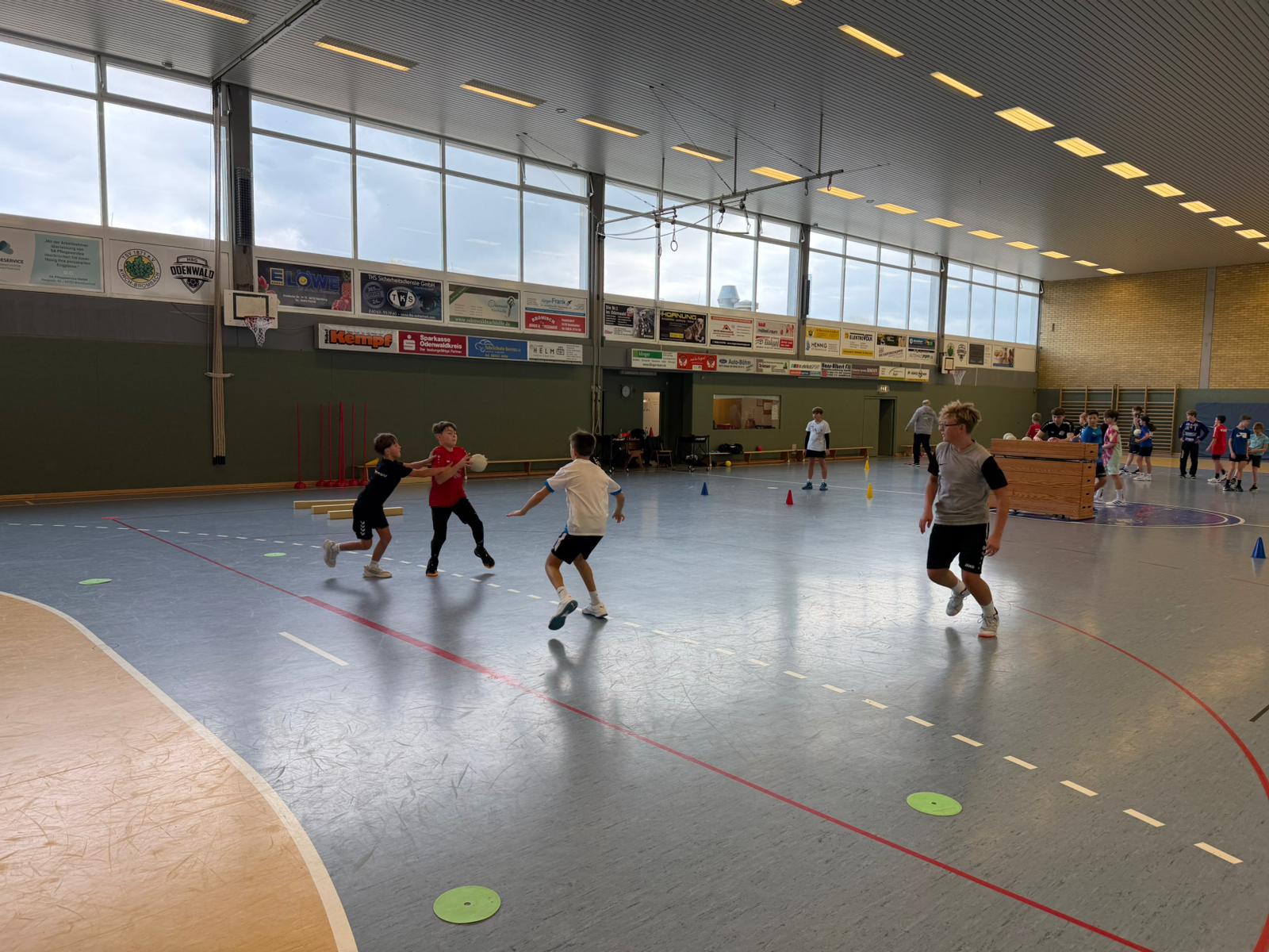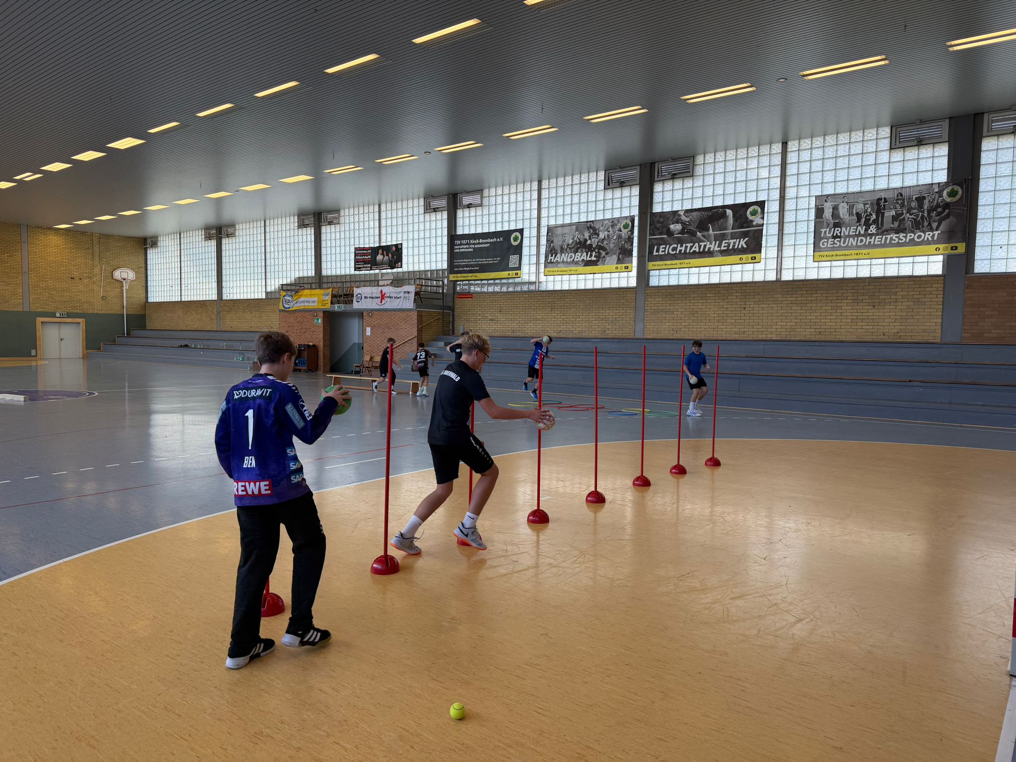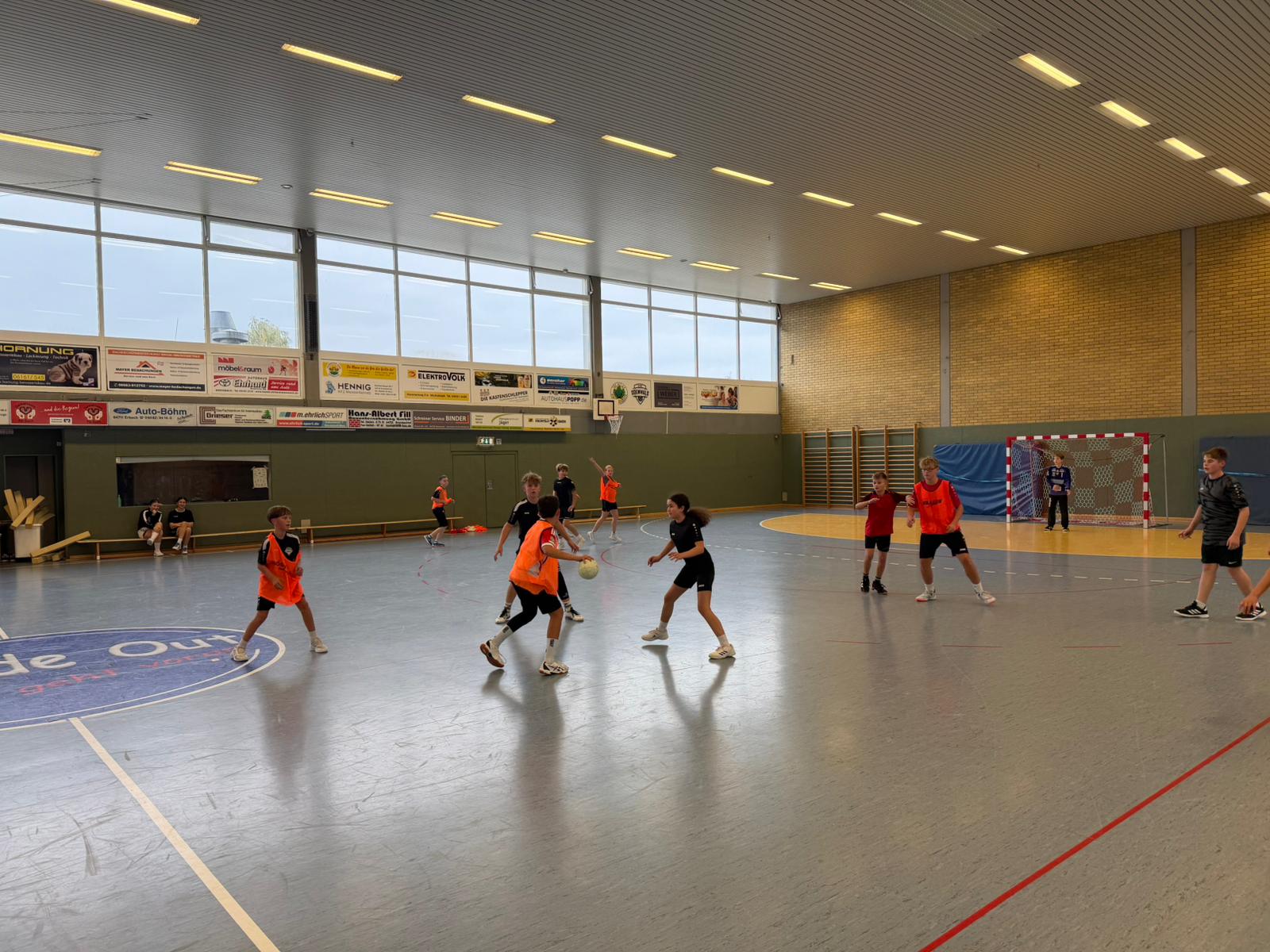 Drei Tage lang wurde trainiert, geschwitzt und viel Spaß gehabt. Die HSG Odenwald hat die Kinder und Jugendlichen der D- und C-Jugend vom 10. – 12. Oktober zum Herbstcamp in die Sporthalle in Kirch-Brombach eingeladen. Insgesamt 15 Stunden Training standen auf dem Plan, angeleitet von unterschiedlichen Trainern der HSG-Familie. Knapp 30 Kinder waren mit dabei, sowohl Mädels als auch Jungs. Organisiert und ins Leben gerufen wurden die drei Tage von Elvira Stein und David Delp, die beide zum Ausbildungsteam der HSG Odenwald gehören. Letzterer war auch zusammen mit Lenny Scholl, Frank Heisel, Christian Becker, Jens Becker und Hannes Weber für die Durchführung der Trainings zuständig. Jeder Trainer brachte auf seine Art und Weise Übungen ein, was das Wochenende sehr vielfältig gestaltete. Neben Abwehr- und Angriffsschulung standen auch Themen wie Koordination oder auch Turnen im Programm. Trainiert wurde jeden Tag von 10:00 Uhr bis 16:00 Uhr, jeweils mit einer Mittagspause, in der die Kinder leckeres Essen vom Team der „Hallenwirtschaft“ serviert bekamen. Zum Abschluss am Sonntagmittag wurden alle Kinder noch zum Grillen ins Vereinsheim eingeladen, um das vollgepackte Handballwochenende abzurunden.